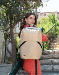 100% recycled 600D polyester. Overhead cabin compatible, fits most airlines. Premium finish lining. Premium webbing carry handles. Detachable adjustable shoulder strap. Main zip compartment. Three internal slip pockets. Two large end slip pockets. Front zip pocket with rain flap and internal slip pockets. Rear zip pocket doubles as a sleeve to slide over a suitcase handle. Tear out label. Capacity 28 litres.
