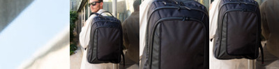 - Two front zipped pockets: small upper pocket, and a larger zipped pocket below it with removable pouch