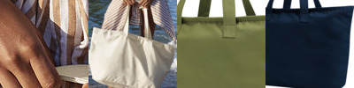 Premium heavyweight fabric. Durable canvas construction. Large capacity. Two front pockets. Zipped main compartment. Nylon zip with self-fabric pull. Dual self-fabric carry handles. Can be carried by hand or over the shoulder. CutAway label for ease of rebranding.