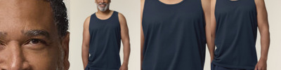 The Stanley Stancer tank top for men. Medium fit. Sleeveless. Self-fabric binding with twin-needle topstitches at collar and armhole. Back neck tape in self-fabric. Twin-needle topstitches at hem.