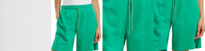 High-waisted design for modern comfort. Regular fit ensures relaxed movement. Timeless solid pattern for versatile styling. Cord closure adds adjustable convenience. Thigh-length cut offers casual appeal.
