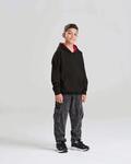 Standard fit with brushed inner fleece, Twin needle stitching detail, Double fabric hood, No drawcords to comply with EU regulations, Kangaroo pouch pocket, Ribbed cuffs and hem, Tearaway label and name label, 100% cotton faced fabric, *Heather Grey: 75% ringspun cotton, 25% polyester, *Charcoal: 52% ringspun cotton, 48% polyester, Age: 1/2yrs 3/4yrs 5/6yrs 7/8yrs 9/11yrs 12/13yrs