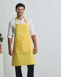 Sliding adjustable buckle on neckband, Self fabric neckband, Self fabric ties, Tablet friendly centre pocket with combined pen slot, Width: 72cm, Length: 86cm, Worldwide Responsible Accredited Production (WRAP) certified production, *Denims: 70% cotton, 30% polyester twill, 265gsm