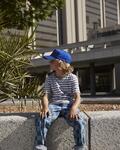 Five panel design, Pre-curved peak, Stitched ventilation eyelets, Child safe secure button, Rip-Strip size adjuster