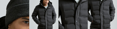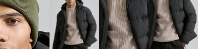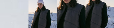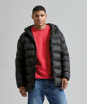 100% Recycled polyester. Full-length zip with storm flap. Concealed rib knit cuffs. Removable peaked panelled hood. Bonded baffles. Front pockets with decorative stitching. One internal pocket. Square back neck buggy. Removable recycled zip pull.