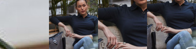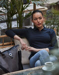 57% Polyester, 39% Cotton, 4% Elastane. Grandad collar, semi-fitted, long sleeve, single cuff, princess seams.