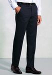 64% Polyester (Recycled), 34% Wool, 2% LYCRA® Elastane. Flat front tailored fit men's trouser, 2 side pockets, 1 rear pocket. Half hem width at waist size 34" = 21cm