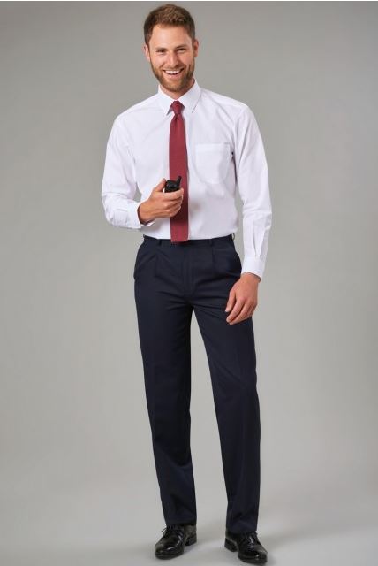 64% Polyester, 34% Viscose, 2% Lycra Slim fit, flat front, 2 side pockets, 1 rear pocket. Half hem width at waist size 34" = 19cm