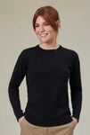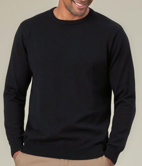 60% Cotton, 40% Acrylic 12 gauge knit. Crew neck, long sleeve, ribbed neck, cuff and hem, contrast inner neck strip.