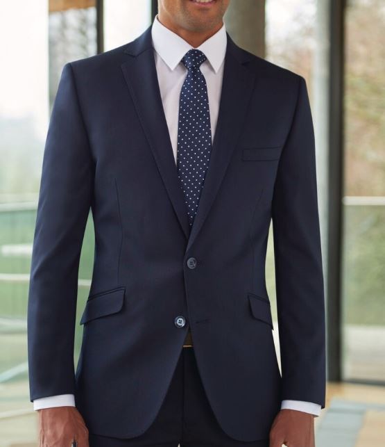 100% Superfine Polyester (43% Recycled) Single breasted jacket, tailored fit, 2 button front, side vents. Centre back length at size 40R = 76cm