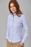 60% Cotton, 40% Polyester, peach finish. Tailored fit, button down collar, bias cut detailing, chest pocket, contrast thread detail