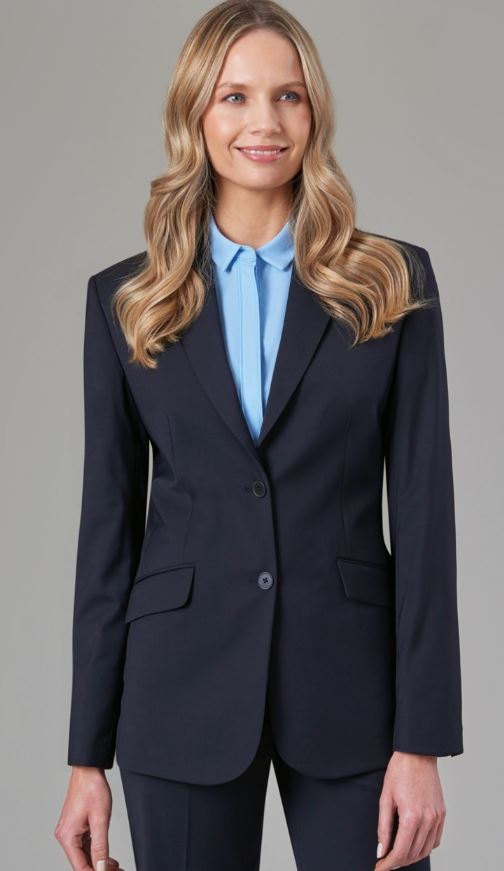 54% Polyester, 44% Wool, 2% LYCRA® Elastane. 2 button classic fit jacket, 2 slanted flap pockets, centre vent, 1 inside pocket. Centre back length at size 12R = 65.5cm