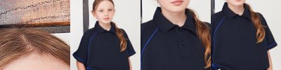 Contrast side panels, piping on sleeve. Side vents with contrast taping, taped neck. Contrast inner placket, three button placket. Also available in kids'