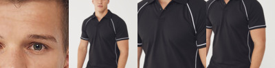 Made using Coolplus® specially modified polyester fibres enable rapid absorption of perspiration from skin surface. Contrast raglan panelling and cuffs with piping. 2 button placket with self fabric collar. Raglan sleeve.
