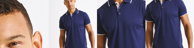 Contrast tipped detail on collar, placket, arm cuffs and side vents. Side panels for a fitted shape. Three button placket. Washing Instructions Domestic wash 40°c.