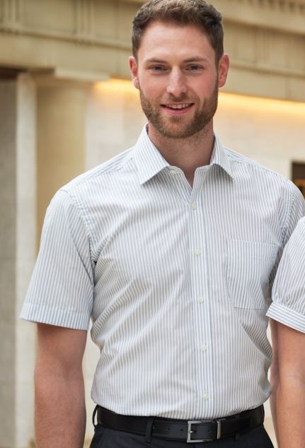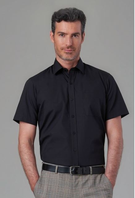 55% Cotton, 45% Polyester Cotton-rich short sleeve men's business shirt. A smart choice for the modern business man. Easy-care and easy-iron practicality. Matches Rapino shirt and Palena & Paduli blouses.