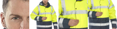 Concealed hood with adjuster. Stormflap with hook and loop. Adjustable cuffs. Inside pocket. 2 zipped lower pockets. Adjustable shockcord hem. Concealed zip entrance in lining for embroidery access .Taped seams. Shaped fit. Size 10, 12, 14, 16, 18, 20