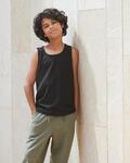 Racer front and back neckline, Twin needle stitching on hem, neck and armholes, Tear out label for easy rebranding