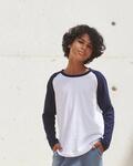 Tear-out SF label, Contrast raglan sleeve and ribbed neck with back neck tape, Longline fit with shaped side seams, Twin needle curved hem, Unisex, *Heather Grey: 85% cotton, 15 % viscose