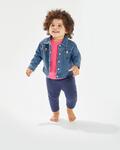 Set in sleeves, Elasticated cuff and hem, Twin needle stitching, YKK popper opening on shoulder up to 24/36 months, Knitted rib at neck, cuff and hem