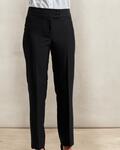 Trouser with deep waistband, YKK fastening zip, Cross over waistband with two button fastening, Straight leg, No pockets