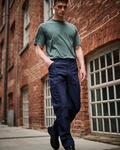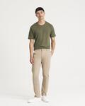 Flat front chino trouser, Stretch fabric for ease of movement, Slanted front pockets, Two back welt pockets, Belt loops, Plain hem, Stretch twill garment washed, Wash at 40 degrees