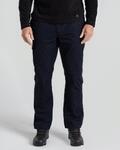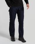 Woven stretch fabric with a durable water repellent finish, Ripstop stretch fabric to knee, seat panels and re-inforcement at the hem, Part elasticated waist and high back waistband, Multi pocketed with front and rear zipped pockets