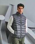 Reverse coil zip on centre front with signature zip puller, Horizontal sandwiched baffles on front and back body, with vertical baffle feature on side seams, Internal binding on all seams, Concealed zip pockets with stretch binding around armholes and hem for added protection, Internal pockets, Internal storm flap with chin guard