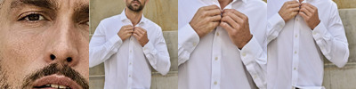Four-way stretch. Wide spread collar. Shaped fit. Modern-shaped cuffs. Back yoke. Easycare. Ascolite button wrapping.