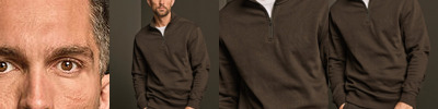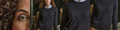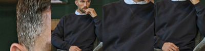 Crew neck. Ribs with elastane and SBS zipper. Herringbone neck tape. Double pre-shrunk. Silicone treatment. Unbrushed inside.