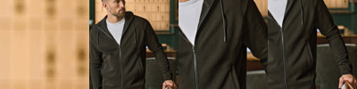 Full-zip. Two-layered hood. Two open front pockets. Ribs with elastane. Herringbone neck tape. Double pre-shrunk. Silicone treatment. SBS zip.