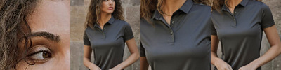 Anthracite contrast buttons. Moisture-wicking. Tailored fit. Self-fabric collar.