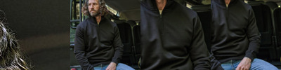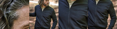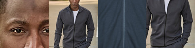 Three-thread fabric. Brushed inside. Ribs with elastane. Double dyed. Double pre-shrunk. Two front pockets with zips. SBS zips.