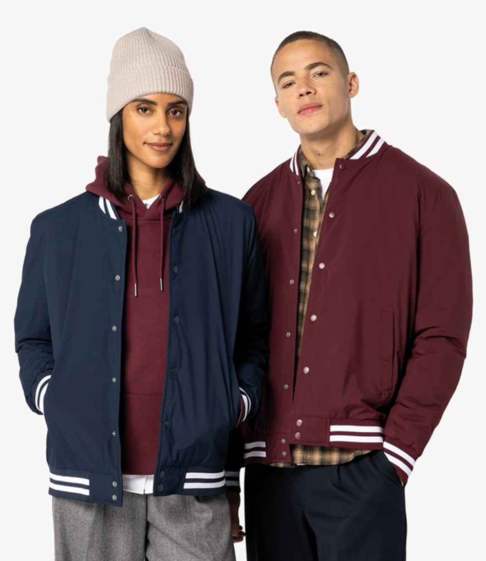 100% recycled polyester. Quilted lining. Recycled polyester padding. Shower resistant. Straight fit. Teddy collar. 1 x 1 contrast ribbed collar, cuffs and hem with contrasting stripes. Recycled press stud closure. Personalisation patch inside neck. Hanging loop. Inner left zip pocket. Two front concealed press stud piped pockets. Tag free. Recycled polyester is made from post-consumer waste.