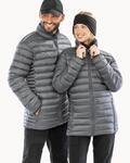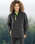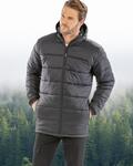Padded and bound elasticised hood, Zip through collar with zip pull, Contemporary quilted design, Soft feel poly wadding, Elasticised cuff, Zipper pockets, inner stormflap and inside pocket, Longer length with a straight hem, Hang loop, Recycled fabric made from recycled plastic bottles and post industrial waste, Offers a sustainable equivalent to conventional yarns, End of life recyclable