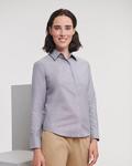 Two button collar stand with classic shaped collar, Curved hem, Darts at bustline and back for tailored fit, Easy care