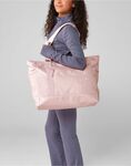 Soft, quilted fabric. Soft-touch lining. Main compartment with hidden magnetic closure. Two internal slip pockets. Lining with hidden zip access for decoration. Self-fabric carry handles. Tear-away label for ease of rebranding. Contains 100% GRS-certified recycled polyester, certified by Control Union CU811033.