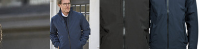 90% Polyester, 10% Elastane. Tailored fit. Two front pockets with zip. Chest pocket. Stand-up collar. Clip down zip pull. SBS zips.