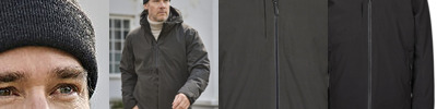 Tailored fit. Two hidden front pockets with zippers. Inner pockets. Elastic banding at the bottom hem. Elastic side panels and sleeves. SBS zippers. Prepared for embroidery. Stand-up collar. Certified recycled polyester.