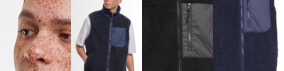 Cosy sherpa shell fabric. Warm internal fleece material. Unisex design. Functional zipped pockets. Stand-up collar. Nylon chest pocket. 30°C. Easycare.
