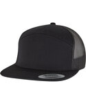 Flat crown with reinforced front. Straight brim. Seamless front. Mesh back. Snapback closure.