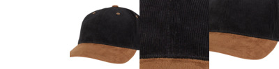 6-panel corduroy crown with reinforced front. Pre-curved velour brim. Adjustable metal buckle closure.