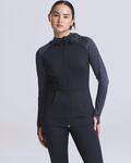 Slim fit, Blended fabric containing elastane that provides stretch for comfort and a great fit, Wicking, quick dry fabric, Full front zip, Contrast melange sleeves, Kangaroo pocket, Scooped hem at bck, Adjustable toggle hood, Thumb hole opening, Tearaway label, Raglan sleeves