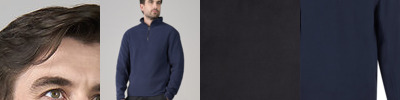 Standard fit. Bound cuff and hem. Twin-needle stitching details. Side panel inserts for shape and fit. ¼-zip neck.