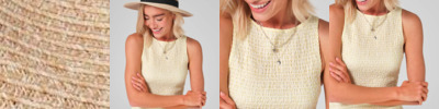 - Flatknit in collar and sleeve cuff
