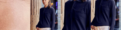 - Contrast colour on neck and sleeve cuff
