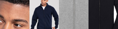 Classic fit. Cadet collar. Covered metal zip for enhanced printability. Two front pockets. Tear-away label. Soft 100% combed ringspun cotton face for best decoration results. Brushed inner fleece. 1x1 rib at cuffs and hem with Lycra for superior comfort. Made with CiCLO® fibres.