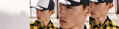 White canvas front. Curved brim and trucker mesh back. Patented Flexfit technology. Perfect wearing comfort.