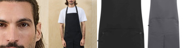 Full bib apron with woven ripstop fabric for strength and durability. Adjustable seatbelt-style neck strap with a clip fastening buckle. Seabelt-style waist ties. Centre pocket with press stud buttons to release extra pocket space. Fabric tab off the centre pocket. Centre split for ease of movement. 86cm long x 72cm wide. 90cm straps. Contains certified recycled polyester. Washable to 60°C.