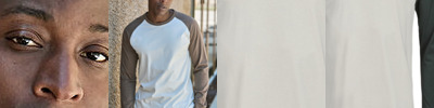 Tailored fit. Raglan sleeves. Self-fabric collar. Double preshrunk. Enzyme-washed. Certified organic cotton.